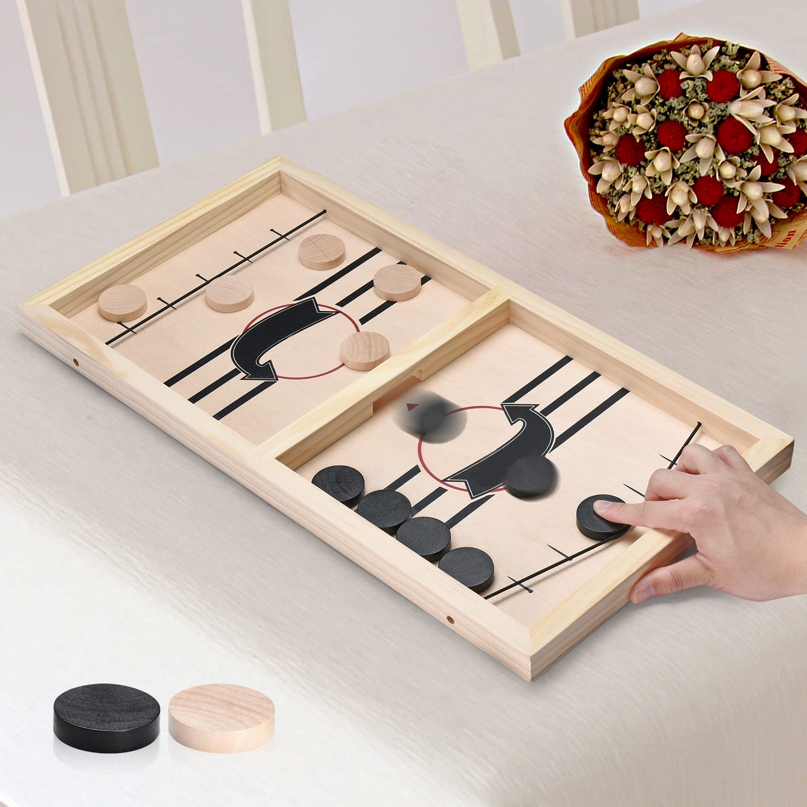 Amazon Com Kiditos 22 4 Fast Sling Puck Game Wooden Hockey Game 3 Levels Challenge 2 4 Players Family Board Game Tabletop Slingshot Hockey Game Foosball Winner Game For Kids Teens And Family Game Night